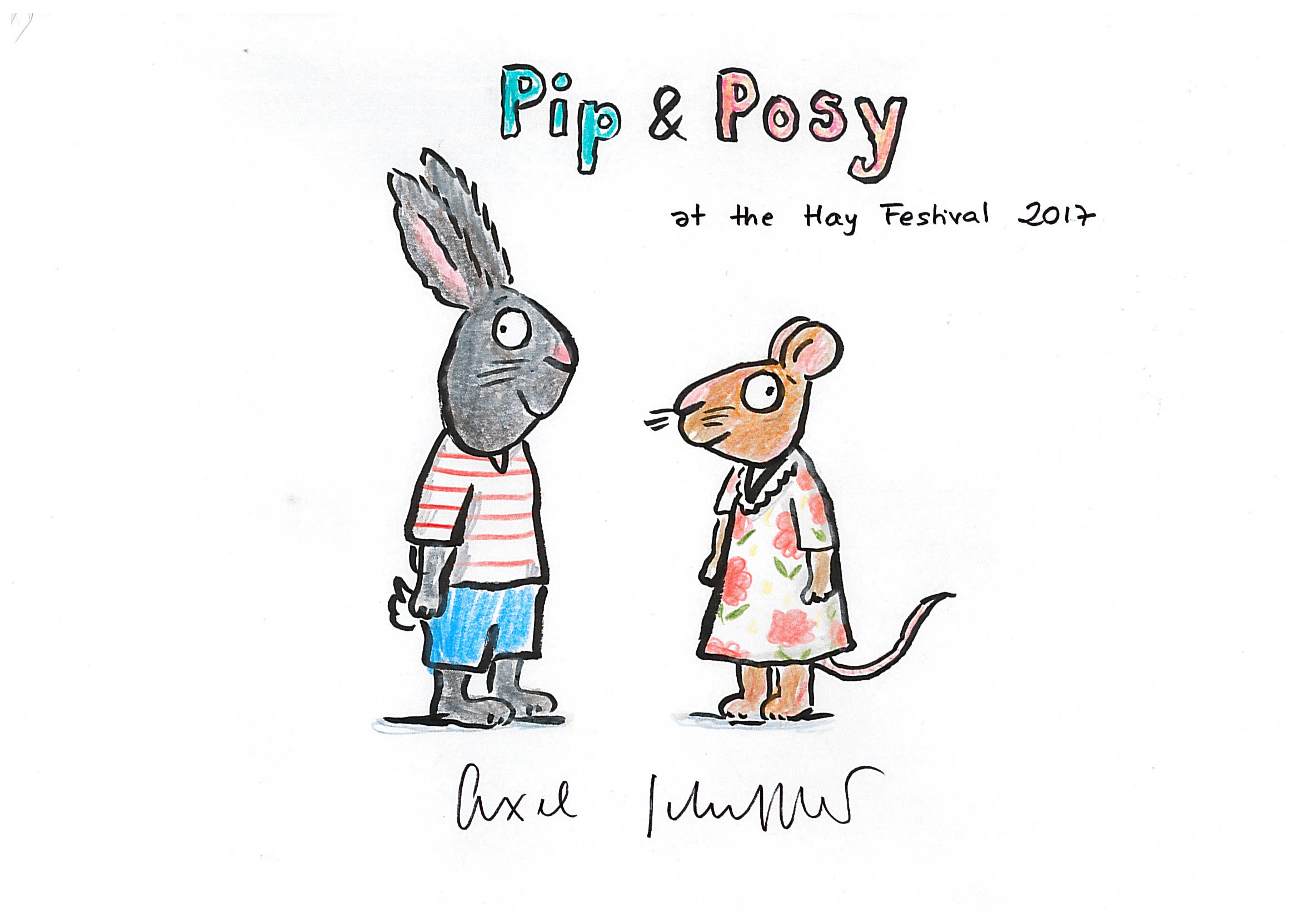 Bid for Axel's drawing of Pip and Posy and raise money for Three Peas charitable work helping refugee families and individuals in Greece.